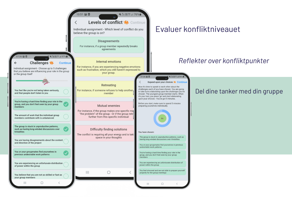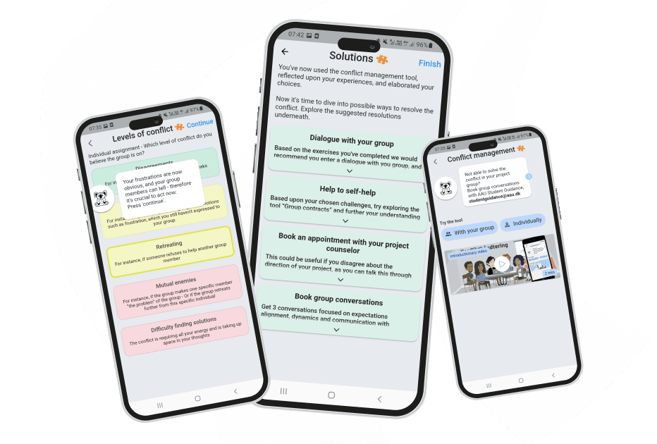 Konflikthåndteringsværktøjet kan findes i Feel Good universet under "Optimér gruppearbejde og gruppeeksamen".