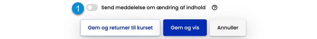 Klik på send meddelelse om ændring af indhold (1) for at sende besked til kursusdeltagerne.