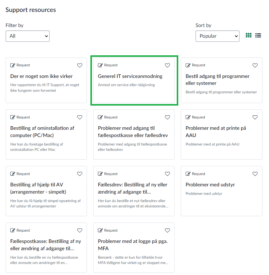 Hvis du skal lave en forespørgsel vedr. rettelsesblad til telefon- og placeringslisten, skal du oprette en Generel IT serviceanmodning.
